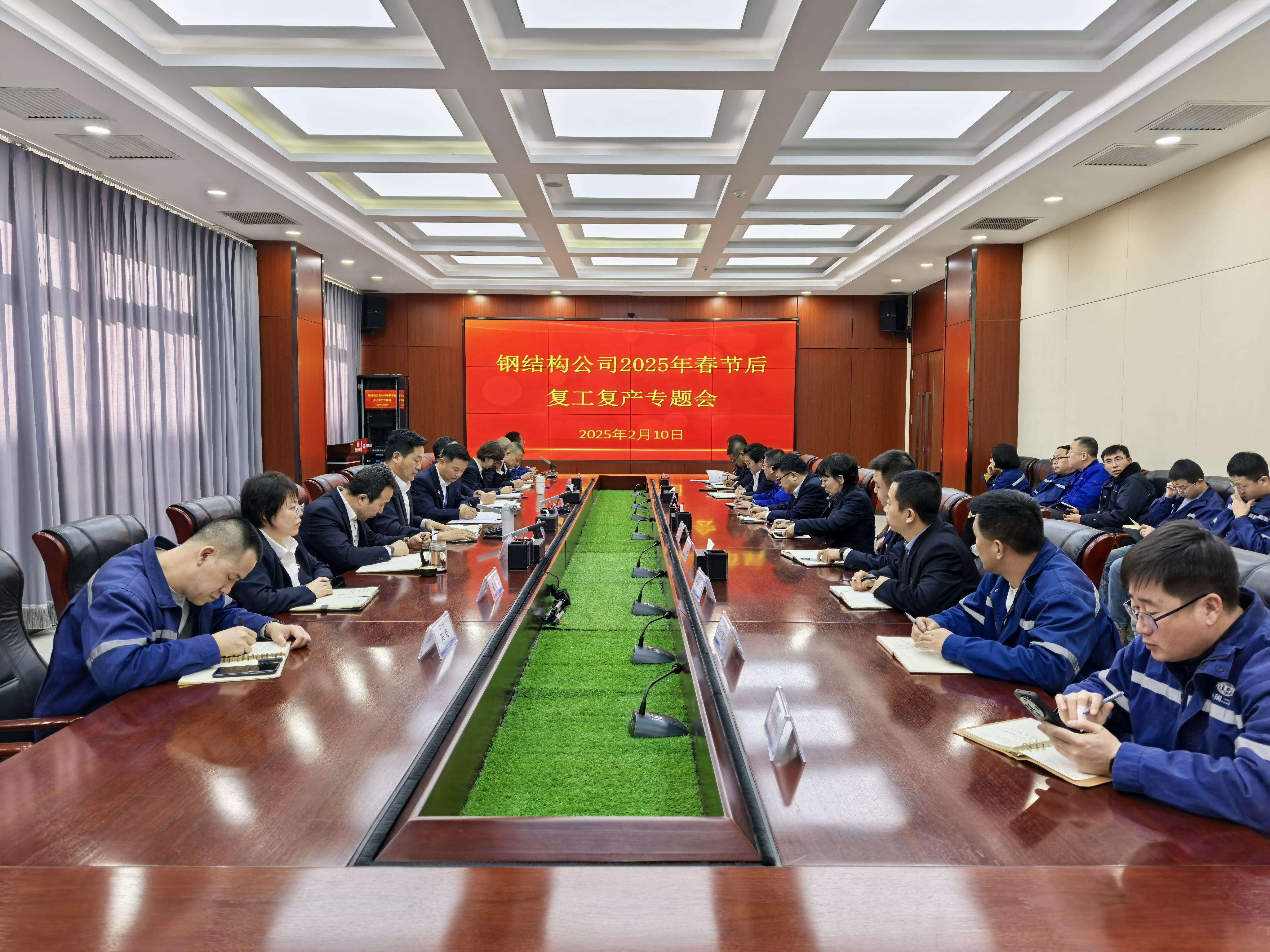 2月10日,鋼構(gòu)分公司召開(kāi)2025年春節(jié)后復(fù)工復(fù)產(chǎn)專(zhuān)題會(huì),全面部署節(jié)后復(fù)工復(fù)產(chǎn)和各項(xiàng)經(jīng)營(yíng)管理工作。鋼構(gòu)分公司總經(jīng)理王志義參加會(huì)議并講話(huà),副總經(jīng)理田廣林主持會(huì)議。