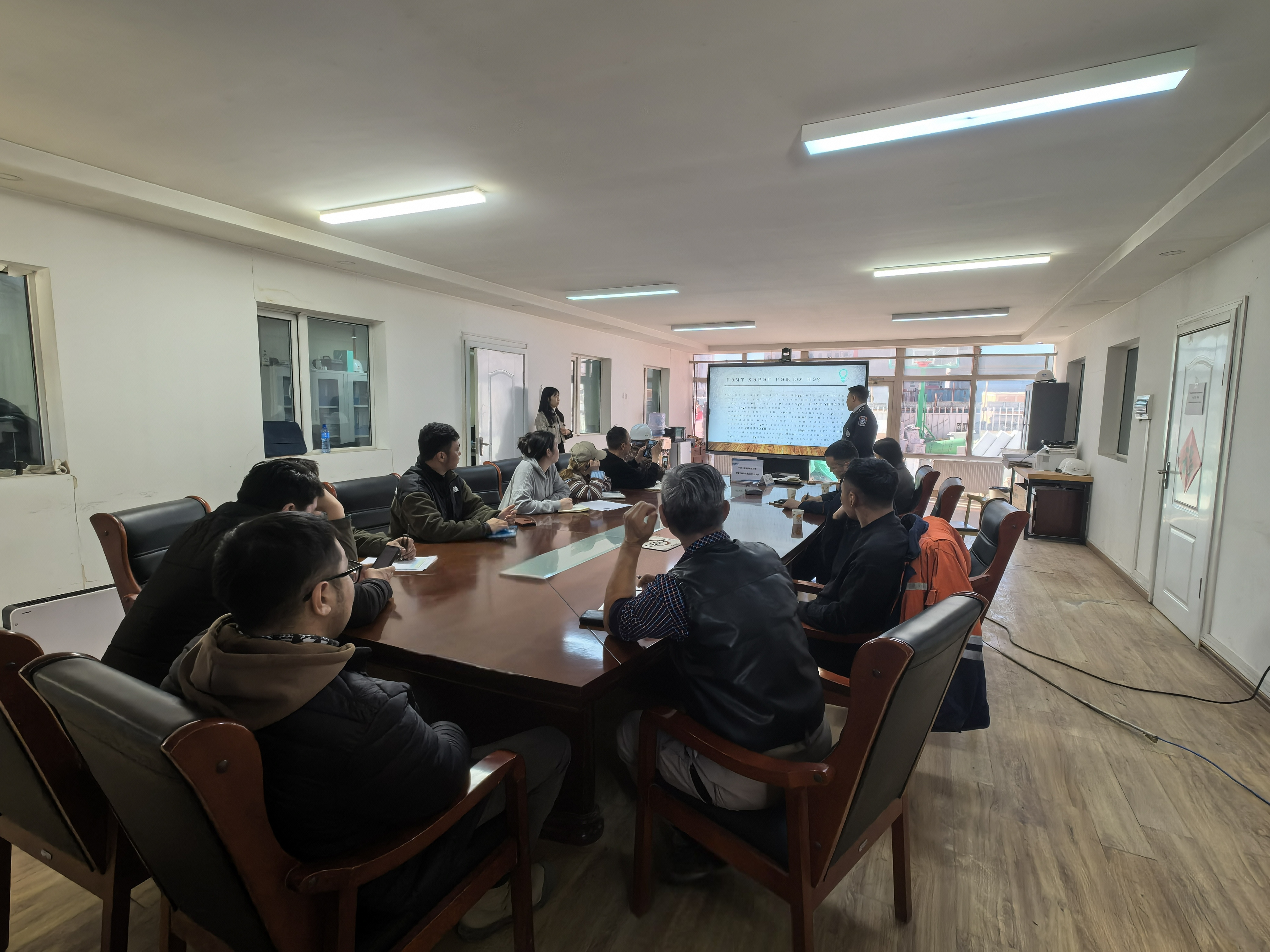本次培訓(xùn)旨在進(jìn)一步增強(qiáng)施工現(xiàn)場(chǎng)的安全管理水平,提升各分包單位人員的安全防范意識(shí)和自我防護(hù)能力。培訓(xùn)聚焦盜竊、打架斗毆等施工現(xiàn)場(chǎng)常見(jiàn)違法犯罪行為,SBD警察局高級(jí)中尉結(jié)合蒙古國(guó)當(dāng)?shù)氐闹伟蔡攸c(diǎn)和實(shí)際案例,針對(duì)施工現(xiàn)場(chǎng)人員眾多、物資繁雜,是不法分子覬覦的目標(biāo)的實(shí)際,深入淺出地分析了盜竊、打架斗毆等違法犯罪行為在施工現(xiàn)場(chǎng)的常見(jiàn)作案手法和誘因,詳細(xì)闡述了其嚴(yán)重后果,提出切實(shí)可行的防范措施,要求項(xiàng)目部工程師及全體建設(shè)者提高警惕,遇到矛盾和糾紛時(shí),保持冷靜,及時(shí)通過(guò)合理合法渠道與項(xiàng)目部溝通,第一時(shí)間向警方報(bào)案解決問(wèn)題,維護(hù)現(xiàn)場(chǎng)治安環(huán)境。要加強(qiáng)法律知識(shí)學(xué)習(xí),熟悉蒙古國(guó)當(dāng)?shù)氐姆蓷l款,做到遵紀(jì)守法,創(chuàng)建平安工地。