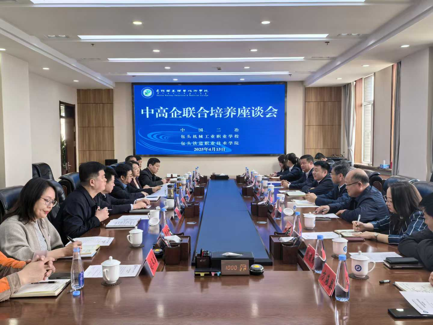 包頭鐵道職業(yè)技術(shù)學(xué)院領(lǐng)導(dǎo)班子成員、各系相關(guān)人員,包頭機(jī)械工業(yè)職業(yè)學(xué)校班子成員、各系相關(guān)人員,鋼構(gòu)公司總經(jīng)理王志義參加座談會(huì)。