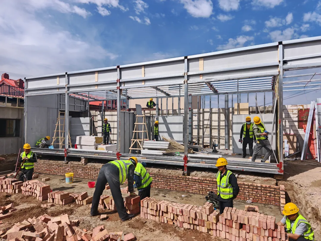 自接到包頭市政府下達(dá)的攻堅(jiān)任務(wù)后,中國(guó)二冶冶金分公司聞令而動(dòng),立即成立專項(xiàng)指揮部,統(tǒng)籌調(diào)配全優(yōu)勢(shì)資源。面對(duì)設(shè)計(jì)圖紙動(dòng)態(tài)調(diào)整、多專業(yè)交叉施工且施工工期只有短短的45天等挑戰(zhàn),項(xiàng)目管理團(tuán)隊(duì)提前組織施工人員進(jìn)行安全培訓(xùn),并預(yù)留大部分人員備戰(zhàn),保證所有工種能及時(shí)施工、全面鋪開(kāi);項(xiàng)目部和設(shè)計(jì)師提前對(duì)接,針對(duì)外觀效果圖及時(shí)確認(rèn)相關(guān)材料,提前備貨,通過(guò)動(dòng)態(tài)設(shè)計(jì)、動(dòng)態(tài)施工,項(xiàng)目領(lǐng)導(dǎo)班子堅(jiān)持二十四小時(shí)現(xiàn)場(chǎng)帶班指揮,施工團(tuán)隊(duì)采取三班倒連續(xù)作業(yè)的模式,形成立體化交叉施工態(tài)勢(shì),確保各工序“零縫隙”推進(jìn)。在項(xiàng)目部全體員工的共同努力下,目前項(xiàng)目所有土建基礎(chǔ)工程已近完成。