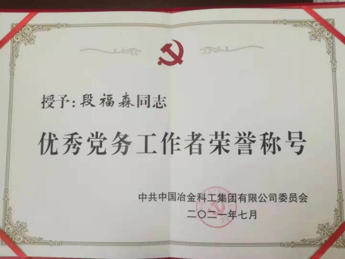 通過(guò)不斷地積累與總結(jié),提煉以往工作經(jīng)驗(yàn),不斷加強(qiáng)自身思想建設(shè)、提升工作能力,段福森同志被授予“中冶集團(tuán)安全生產(chǎn)先進(jìn)個(gè)人”“中冶集團(tuán)優(yōu)秀黨務(wù)工作者”“包頭市優(yōu)秀黨務(wù)工作者”“中國(guó)二冶優(yōu)秀黨務(wù)工作者”“中國(guó)二冶先進(jìn)生產(chǎn)工作者”等榮譽(yù)稱號(hào)。