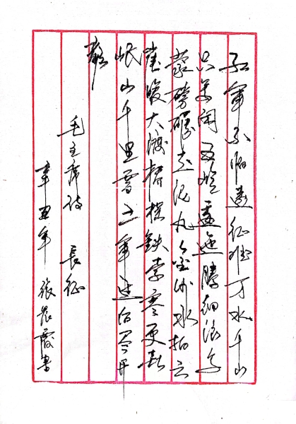 “紅軍不怕遠征難,萬水千山只等閑。五嶺逶迤騰細浪,烏蒙磅礴走泥丸。金沙水拍云崖暖,大渡橋橫鐵索寒。更喜岷山千里雪,三軍過后盡開顏。”