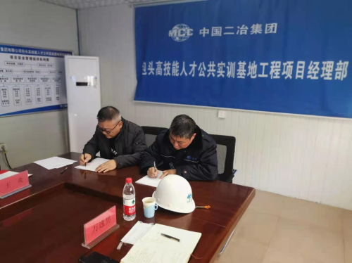 會上,包頭市人社局技能鑒定指導(dǎo)中心主任朝格圖與中國二冶包頭市實(shí)訓(xùn)基地項(xiàng)目部項(xiàng)目經(jīng)理萬逸男代表雙方簽訂《安全質(zhì)量責(zé)任書》。