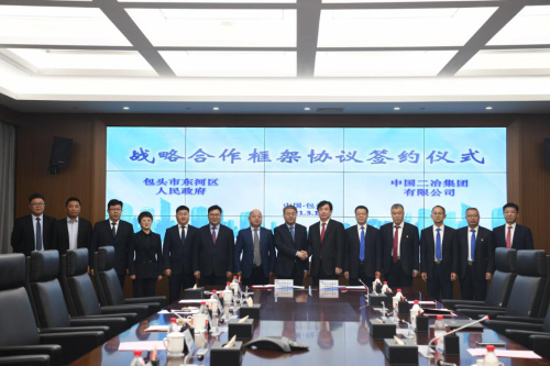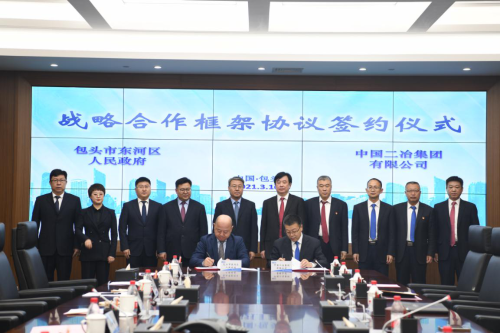 中國(guó)二冶總經(jīng)理、黨委副書記高文華和包頭市東河區(qū)委常委、常務(wù)副區(qū)長(zhǎng)徐剛代表雙方在戰(zhàn)略合作框架協(xié)議上簽字。