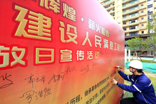 在辦實(shí)事、開新局環(huán)節(jié),項(xiàng)目全體黨員在黨旗下重溫入黨誓詞,表示要踐行長征精神,建設(shè)人民滿意工程,更加堅(jiān)定作為一名共產(chǎn)黨員的理想信念;活動中,中國二冶黨群工作部向黨員突擊隊(duì)和青年突擊隊(duì)授旗,各方代表表達(dá)了“踐行初心使命,認(rèn)真履職盡責(zé)”的決心;全體職工簽下請戰(zhàn)書,紛紛表示將繼續(xù)充分發(fā)揚(yáng)“一天也不耽誤,一天也不懈怠”的中冶精神,以求真務(wù)實(shí)、開拓創(chuàng)新的精神,把全部力量凝聚到項(xiàng)目建設(shè)中來,向成都市人民交出一份滿意的答卷,隨后,各方代表圍繞安全環(huán)保、項(xiàng)目建設(shè)、工程質(zhì)量、工程進(jìn)度等情況進(jìn)行充分探討,對中國二冶董家埂社區(qū)工程的建設(shè)亮點(diǎn)進(jìn)行深入了解。