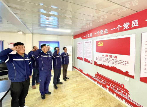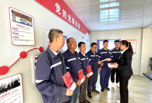 在學(xué)黨史、悟思想環(huán)節(jié),新型建筑分公司副總經(jīng)理帶領(lǐng)大家學(xué)習(xí)《弘揚(yáng)西柏坡精神》,觀看西柏坡教育視頻,舉行授旗儀式,并在黨旗下重溫入黨誓詞。通過分享西柏坡的故事、贈(zèng)送《西柏坡精神》等學(xué)習(xí)書籍,用革命先烈們堅(jiān)韌不拔、無私奉獻(xiàn)的精神鼓舞大家堅(jiān)守初心使命,展示了項(xiàng)目部在工程建設(shè)中積極發(fā)揮黨支部戰(zhàn)斗堡壘作用,引導(dǎo)廣大黨員干部做到學(xué)史明理、學(xué)史增信、學(xué)史崇德、學(xué)史力行,激勵(lì)黨員干部深耕細(xì)作、精細(xì)管理,在黨史學(xué)習(xí)教育中立足本職工作,把紅色教育的收獲轉(zhuǎn)化為扎實(shí)做好本職工作的動(dòng)力。