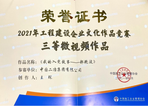 會(huì)上公布了2021年工程建設(shè)企業(yè)文化作品競(jìng)賽活動(dòng)評(píng)選結(jié)果及2021年度優(yōu)秀通訊員名單。中國二冶官網(wǎng)榮獲工程建設(shè)企業(yè)文化作品競(jìng)賽優(yōu)秀網(wǎng)站;公司黨群工作部王延祥、王志義、于超群主創(chuàng)的《光榮與夢(mèng)想》榮獲微視頻作品類一等獎(jiǎng);路橋分公司王琛主創(chuàng)的《我的入黨故事——郝艷波》榮獲微視頻作品類三等獎(jiǎng);公司黨群工作部張婷榮獲2021年度優(yōu)秀通訊員。