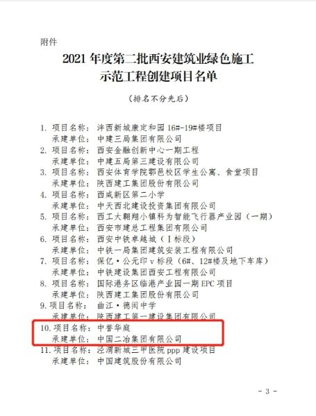 12月30日,由中國(guó)二冶承建的中譽(yù)華庭項(xiàng)目榮獲“2021年度第二批西安建筑業(yè)綠色施工示范工程”稱(chēng)號(hào)。