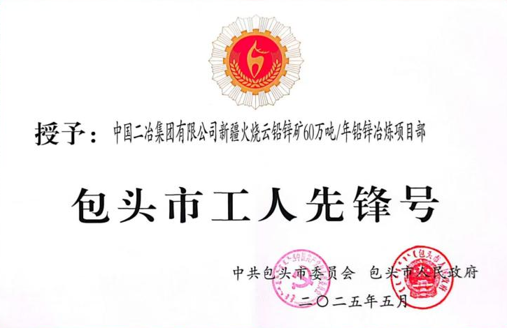 近日,中共包頭市委員會(huì)包頭市人民政府公布關(guān)于表彰包頭市五一勞動(dòng)獎(jiǎng)的決定,中國(guó)二冶新疆火燒云鉛鋅礦60萬(wàn)噸/年鉛鋅冶煉工程項(xiàng)目榮獲“2025年包頭市工人先鋒號(hào)”榮譽(yù)稱號(hào)。