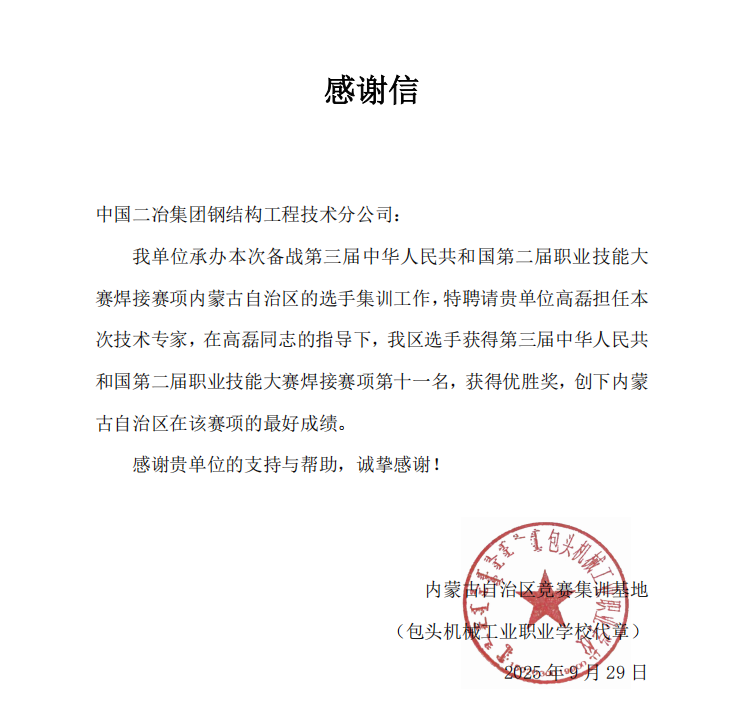 經(jīng)過系統(tǒng)指導(dǎo)與刻苦訓(xùn)練,高磊帶領(lǐng)的參賽選手在全國百余支隊(duì)伍的激烈角逐中脫穎而出,最終榮獲大賽焊接賽項(xiàng)第十一名,獲得優(yōu)勝獎,創(chuàng)下內(nèi)蒙古自治區(qū)在該賽項(xiàng)的最好成績。