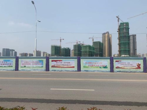 山東分公司青島興源巴黎城項目部為弘揚公益事業(yè),彰顯企業(yè)擔當,以亮化施工環(huán)境、提升企業(yè)形象為抓手,對施工區(qū)域圍擋進行全面改造,對原全封閉圍擋增加了柱體支撐,設置了出風口,更換了以公益廣告為內容的宣傳彩繪畫布。項目所在地膠州市溫州路300米路段為之煥然一新。