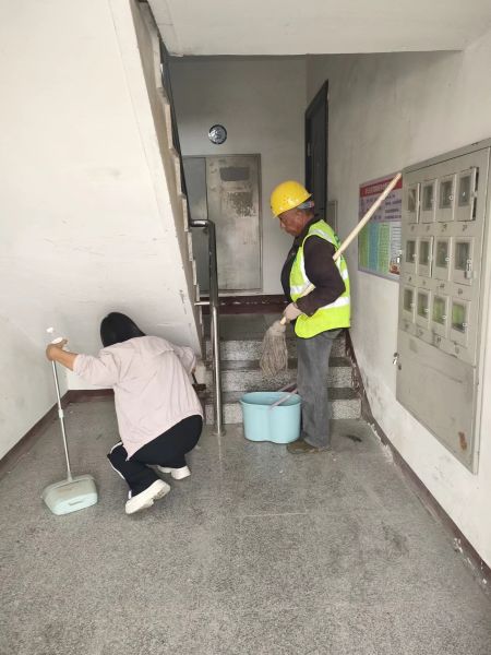 抵達社區(qū)后,項目部人員根據(jù)分配任務熱情高漲地開始了清掃工作,對小區(qū)公共場地、雜草、地面垃圾等進行了清理,對小區(qū)的健身器材進行了擦拭,對老舊停車位線進行了重新噴涂。在清理單元樓道時,項目部人員不怕辛苦,仔細耐心地清理了張貼在樓道墻上的小廣告,擦拭了樓道扶手,對樓道內(nèi)自行車輛進行了重新地擺放。經(jīng)過項目部人員的共同努力,社區(qū)環(huán)境煥然一新,為社區(qū)居民營造了一個干干凈凈的居住環(huán)境。