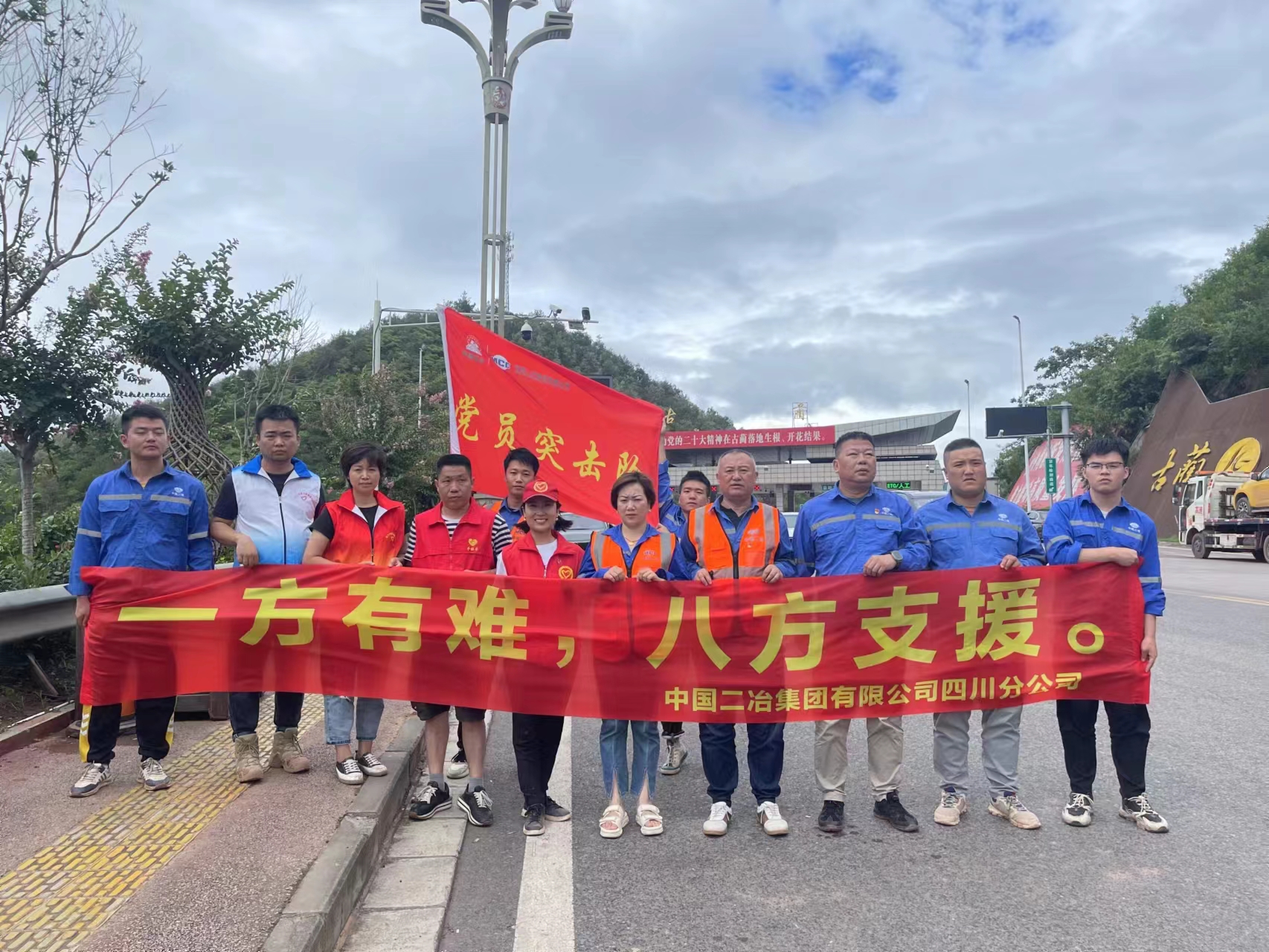 “遭遇極端強(qiáng)降雨……”“預(yù)報(bào),今晚有雨……”連日來,古藺縣遭遇極端強(qiáng)降雨,全縣大暴雨13站,超過1957年有氣象記錄以來歷史極值(163.7毫米),縣城大面積停電停水,古藺縣城酒街、彰德紅龍湖、古藺建國村等多處地段水位上漲,多處路段被毀,道路積水嚴(yán)重,交通受阻嚴(yán)重,部分區(qū)域通信受到影響。中國二冶四川分公司在瀘項(xiàng)目部緊急行動(dòng),召開抗洪搶險(xiǎn)救災(zāi)工作會(huì)議,成立抗洪搶險(xiǎn)救災(zāi)突擊隊(duì),第一時(shí)間奔赴防汛一線,緊急排查各類隱患問題、清理道路淤泥積水、為受災(zāi)群眾捐贈(zèng)物資......為打贏救災(zāi)攻堅(jiān)戰(zhàn)扛起了央企義不容辭的責(zé)任。自災(zāi)情發(fā)生以來,在古藺縣城區(qū)隨處可見中國二冶四川分公司抗洪搶險(xiǎn)救災(zāi)突擊隊(duì)的隊(duì)員忙碌的身影。