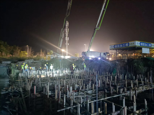 挑燈夜戰(zhàn)干勁高,不怕吃苦掀高潮。10月24日深夜,資陽(yáng)騮馬新村安置房項(xiàng)目多層樓棟作業(yè)現(xiàn)場(chǎng)燈火如晝、奮楫正酣,700多施工人員奮戰(zhàn)一線?,F(xiàn)場(chǎng)澆筑混凝土振搗聲嗡嗡作響,作業(yè)人員正在澆筑2#樓基礎(chǔ)混凝土,此次澆筑方量為200立方米,澆筑時(shí)長(zhǎng)達(dá)5小時(shí)。進(jìn)入四季度以來(lái),資陽(yáng)安置房項(xiàng)目精心制定工期節(jié)點(diǎn),倒排工期并分解到月計(jì)劃、周計(jì)劃,每周日組織召開(kāi)專題會(huì)議對(duì)上周計(jì)劃進(jìn)行盤(pán)點(diǎn)考核,獎(jiǎng)優(yōu)罰劣,同時(shí),公布下周任務(wù)計(jì)劃,現(xiàn)場(chǎng)形成了一股干勁兒,各分包單位爭(zhēng)先恐后追趕進(jìn)度,掀起大干熱潮。