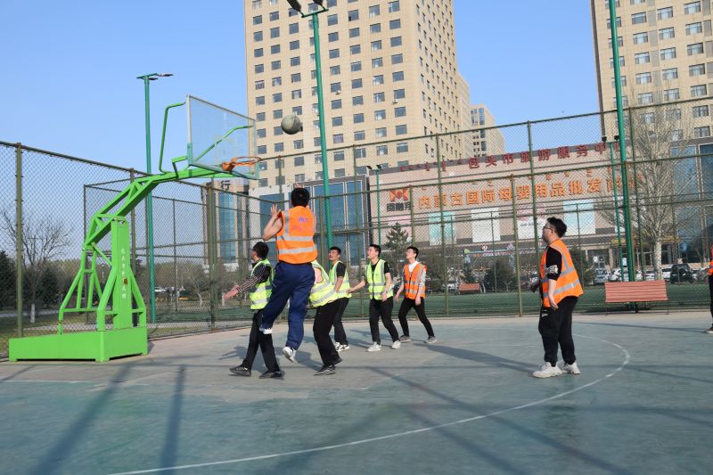 城建分公司商務(wù)大廈項目部現(xiàn)有團員青年13名,占項目在崗職工總數(shù)的65%。其中黨員7名,占團員青年總數(shù)的54%。項目部團支部自2019年成立后,緊扣黨建帶團建,黨有號召團有行動的號令,團員青年、青年黨員沖鋒在施工一線,闖關(guān)奪隘,在商務(wù)大廈、都市庭苑項目疫情防控、奮戰(zhàn)120天勞動競賽中完成了多項施工節(jié)點,青年黨員、團員青年在施工中冒強風(fēng)頂暴雨,戰(zhàn)晴天斗嚴(yán)寒,晝夜奮戰(zhàn),團員青年壓力大工作環(huán)境極其艱苦,為了緩解團員的壓力,調(diào)動黨員、團員青年的積極性,項目部以“學(xué)黨史、悟思想、辦實事”為主線,由團支部組織,展開籃球?qū)κ仲?。活動伊始,團支部書記詳細(xì)介紹了本次半場籃球比賽的規(guī)則,全程實行記分制,進(jìn)球一顆得一分,不進(jìn)球不得分,最先達(dá)到5分獲勝。4月22日下午5點30分,活動首先通過轉(zhuǎn)球形式分為兩隊,兩隊隊員摩拳擦掌,躍躍欲試,兩隊緊盯裁判哨聲和籃球,只聽哨聲一響,籃球飛躍空中,兩隊隊員奮力拼殺搶球,拉開了籃球?qū)κ仲悾局颜x第一比賽第二的賽事原則,隊員們密切配合,一個眼神一個傳球動作都是隊員默契傳球的暗號,賽場上你爭我奪,隊員們身形敏捷,輾轉(zhuǎn)騰挪,經(jīng)過激烈比拼,比賽采用三局兩勝制,最終黃馬甲隊贏得2局獲勝。