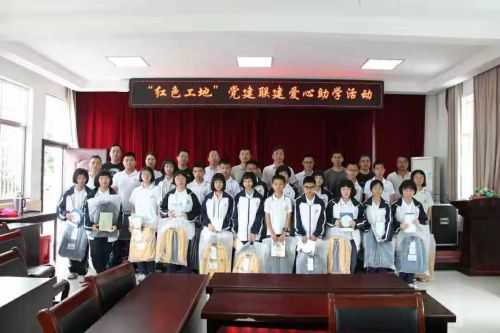 天長北路安置項(xiàng)目部聯(lián)合臺(tái)州黃巖中環(huán)房地產(chǎn)開發(fā)有限公司、黃巖區(qū)建筑工程質(zhì)量安全事務(wù)中心黨支部和黃巖區(qū)頭陀鎮(zhèn)中學(xué)黨支部,以黨建聯(lián)建為載體,以捐資助學(xué)、唱紅歌、講紅色故事為活動(dòng)抓手,為頭陀鎮(zhèn)中學(xué)生活困難的學(xué)生送上書包、書本等物品,讓紅色文化在孩子們的心里落地生根,將紅色基因代代相傳。