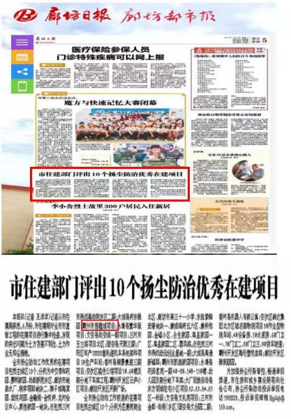 7月7日,從廊坊市住建局獲悉,中國二冶城建分公司河北霸州市國蘊城項目榮獲廊坊市揚塵防治優(yōu)秀在建項目?!独确蝗請?mdash;—綜合新聞》以題為《市住建部門評出10個揚塵防治優(yōu)秀在建項目》進(jìn)行跟蹤報道,并進(jìn)行公布。