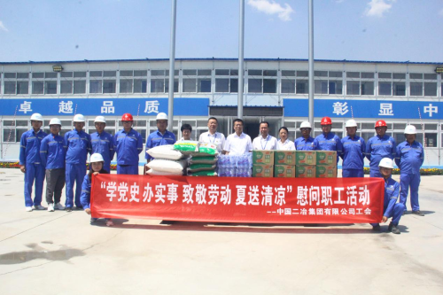 炎炎烈日送清涼,關(guān)愛員工暖人心。7月13日,中國二冶啟動“致敬勞動 夏送清涼”慰問職工活動,公司黨委書記、董事長徐永鋒,總經(jīng)理、黨委副書記高文華等領(lǐng)導紛紛來到施工現(xiàn)場,將綠豆、白糖等防暑慰問品送到一線員工手中,為他們送去了親切問候和濃濃關(guān)懷。
